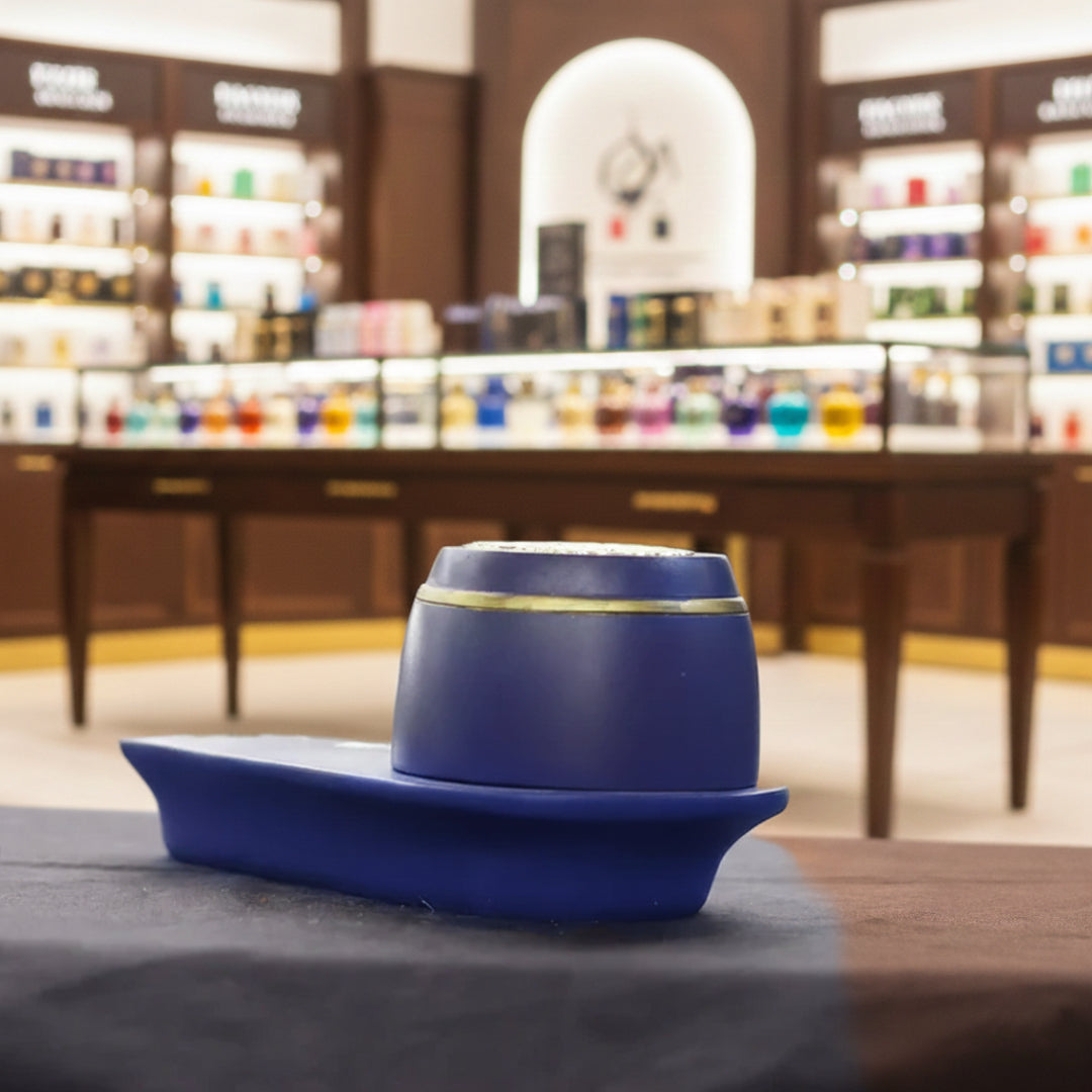 Sleek Contemporary Design: This electric burner features a minimalist, deep navy blue finish with a premium gold trim, blending modern style with traditional fragrance.